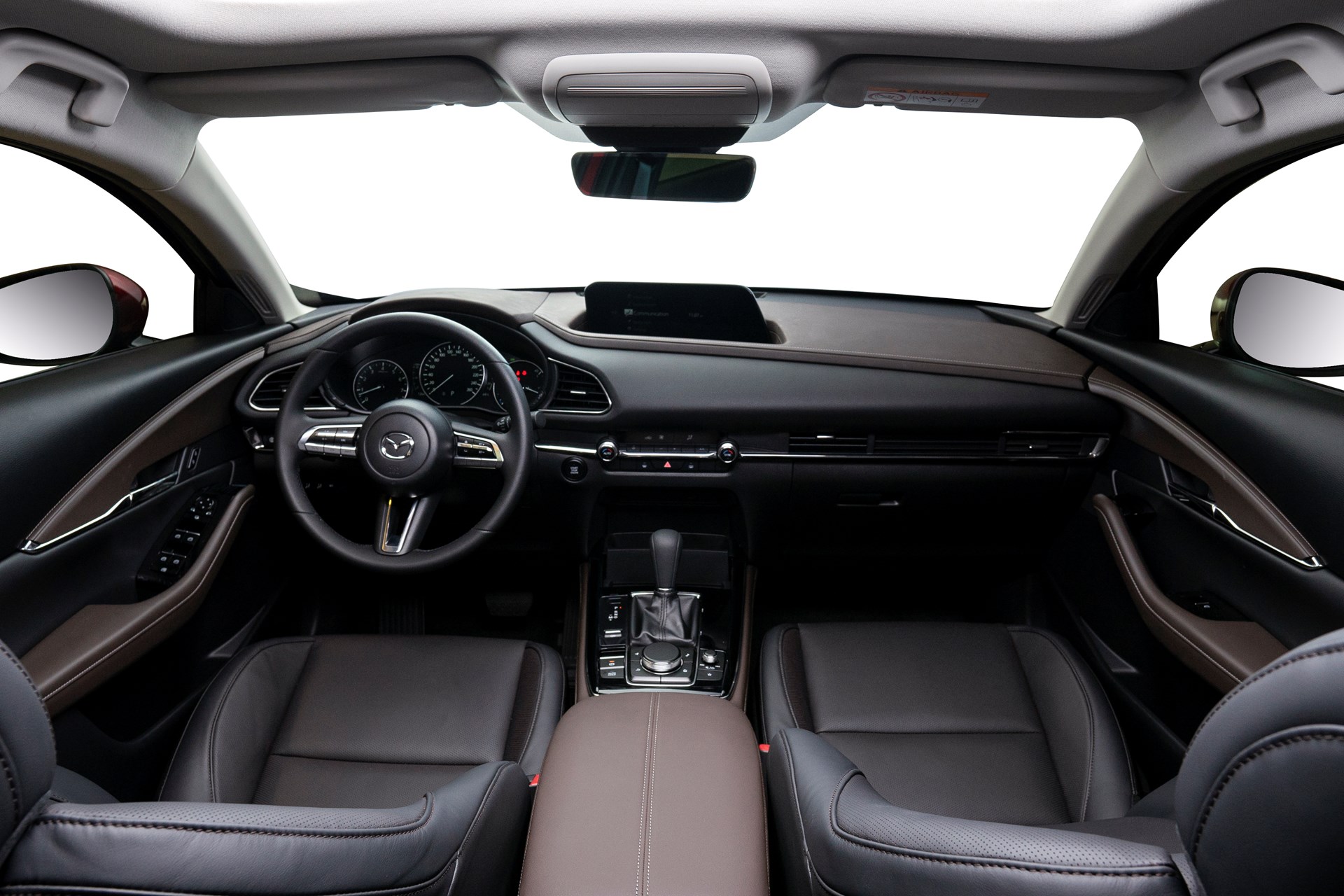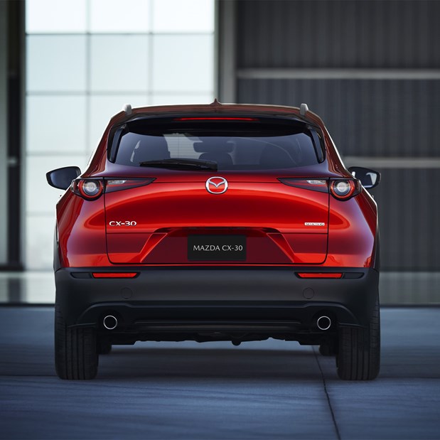 Mazda CX-30 thiết kế nóc xe cao, mở rộng kích thước khoang cửa sổ, mang lại tầm nhìn rộng và tư thế ngồi thoải mái cho người ngồi phía sau. Phần cột D kéo dài về phía sau, mang lại cảm giác thể thao như một mẫu xe coupe đồng thời gia tăng sự rộng rãi của khoang hành lý.